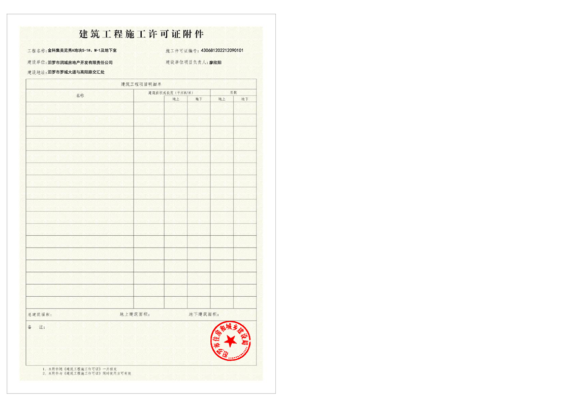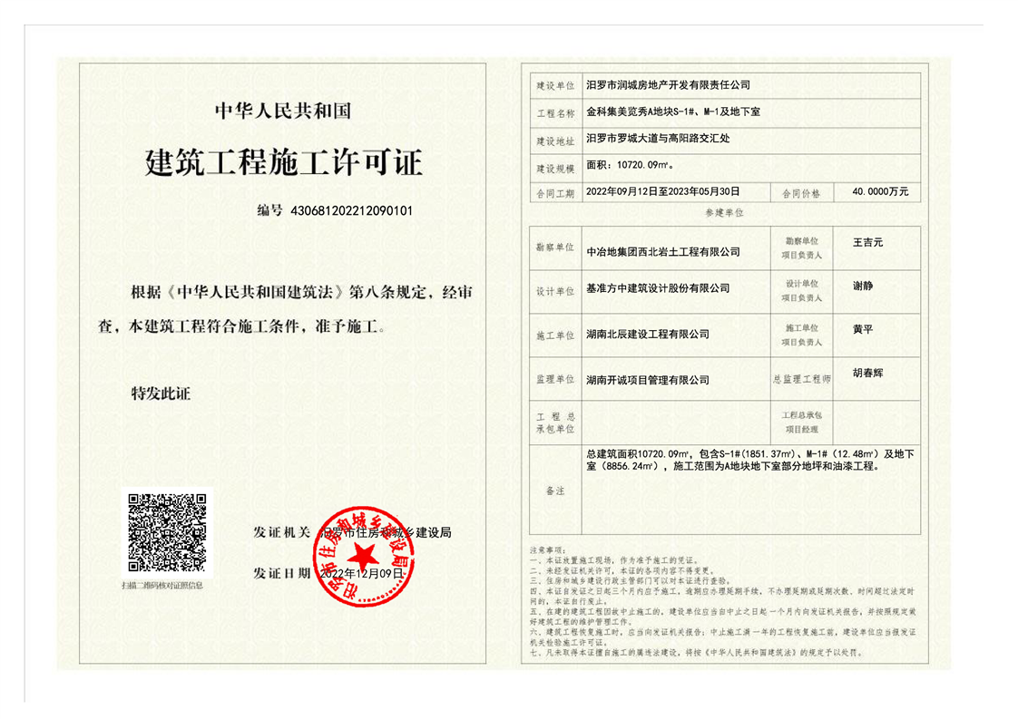金科集美览秀A地块S-1#、M-1及地下室施工许可证
