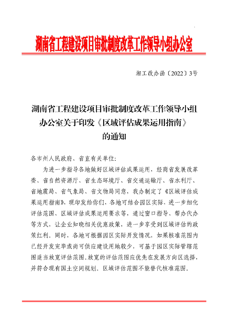 关于印发《区域评估成果运用指南》的通知