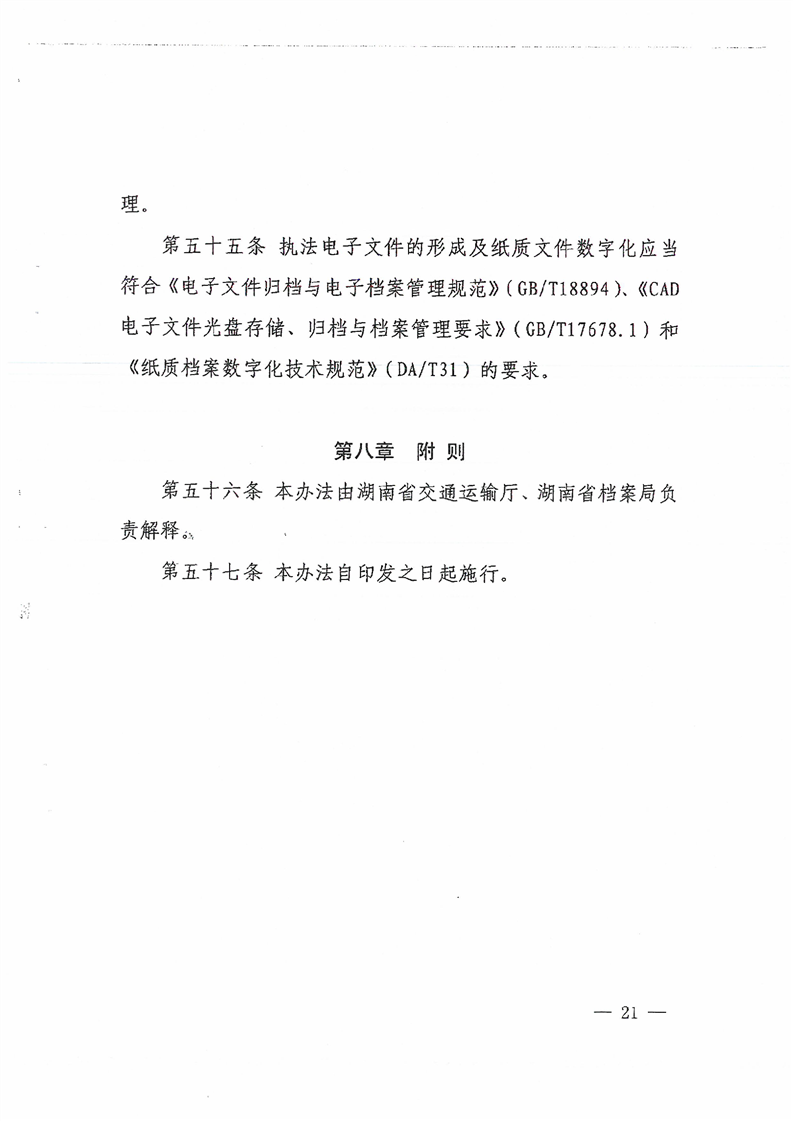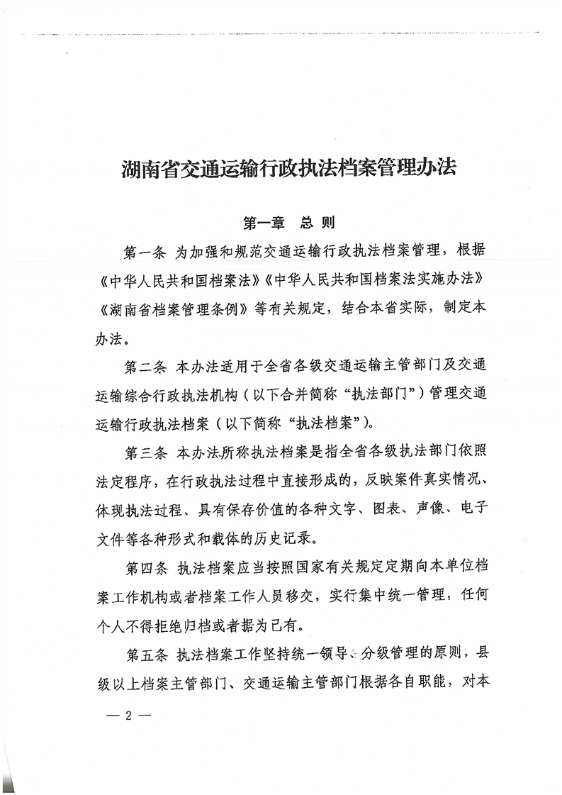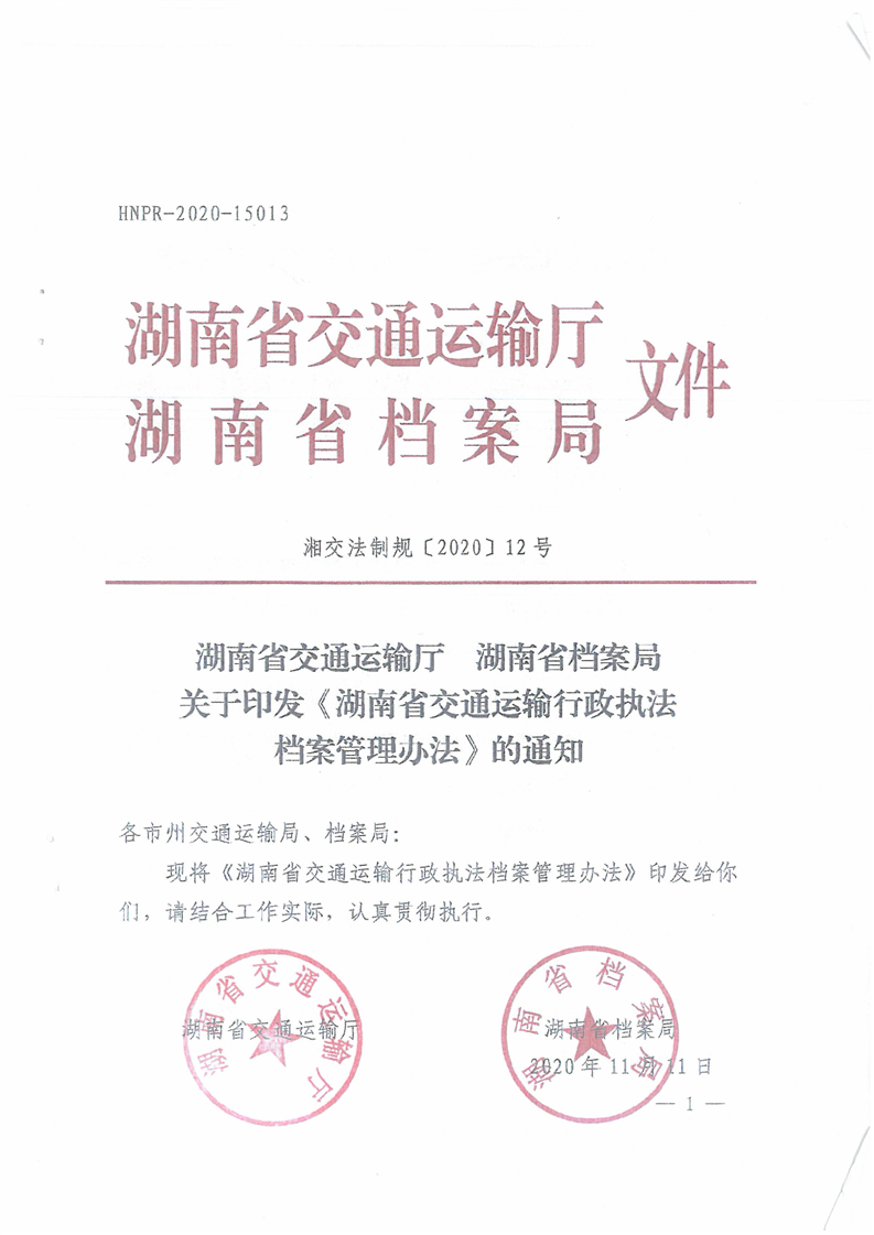 关于印发《湖南省交通运输行政执法档案管理办法》的通知