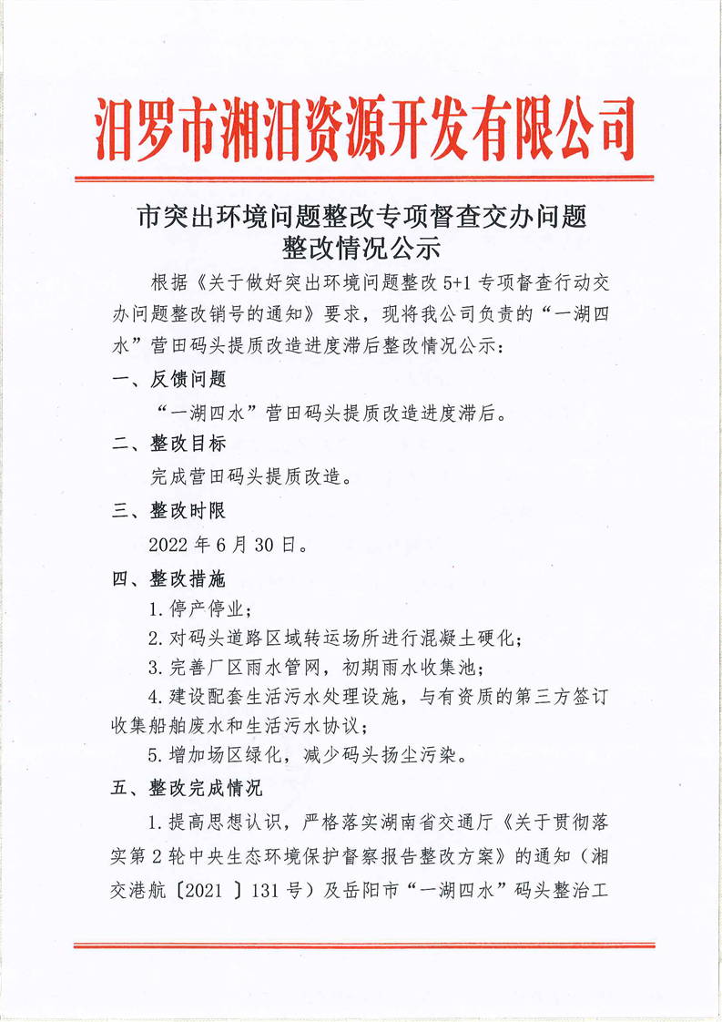汨罗市突出环境问题整改专项督查交办问题整改情况公示