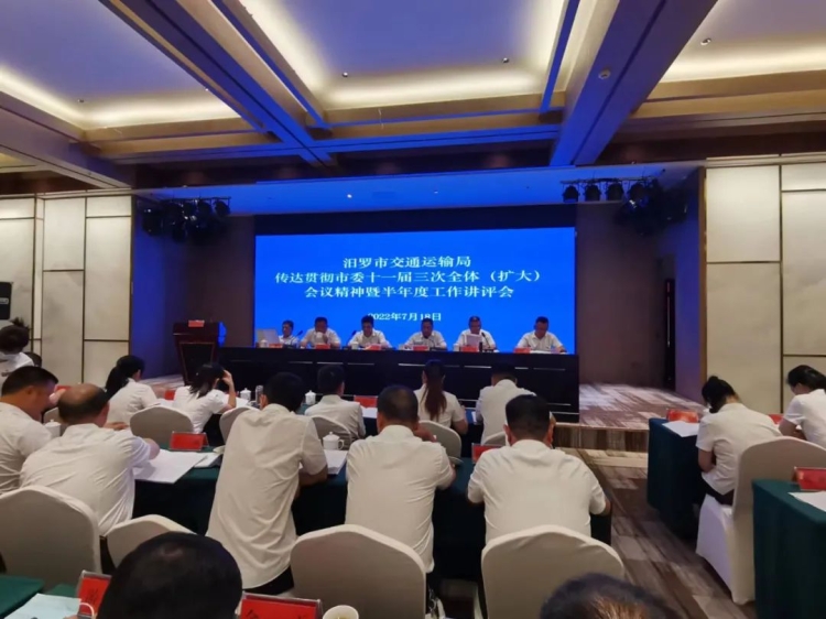 会上深入传达贯彻了7月8日岳阳市上半年经济形势分析会和7月15日汨罗市委十一届三次全体(扩大)会议暨半年度工作讲评会议精神,通报了交通运输系统2022年重点工作任务半年度完成情况,学习传达了新冠肺炎防控相关重要文件精神,下发解读了中层干部轮岗交流等文件,同时,4名单位(股室)负责人就加快项目建设、规范执法程序、优化营商环境、抓好民生实事、落实“三个一”行动分别作了表态发言。最后,局党组书记、局长杨帅结合岳阳、汨罗会议精神,对上半年工作完成情况进行了讲评,以“七个务必进一步”围绕思想上再统一、行动上再加压、目标上再明确、措施上再具体进行了强调部署,要求局机关各股室、局属各单位对标对表,查漏补缺,扬长补短,抓重点、补短板、强弱项,奋发作为,真抓实干,确保高质量、高标准全面完成年度目标任务,为谱写汨罗高质量发展新篇章贡献交通力量。