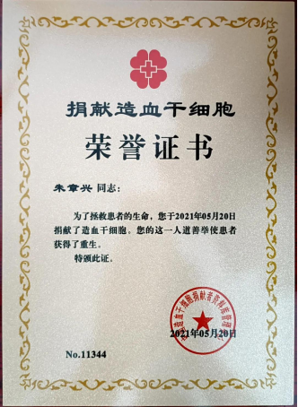 捐献造血干细胞荣誉证书
