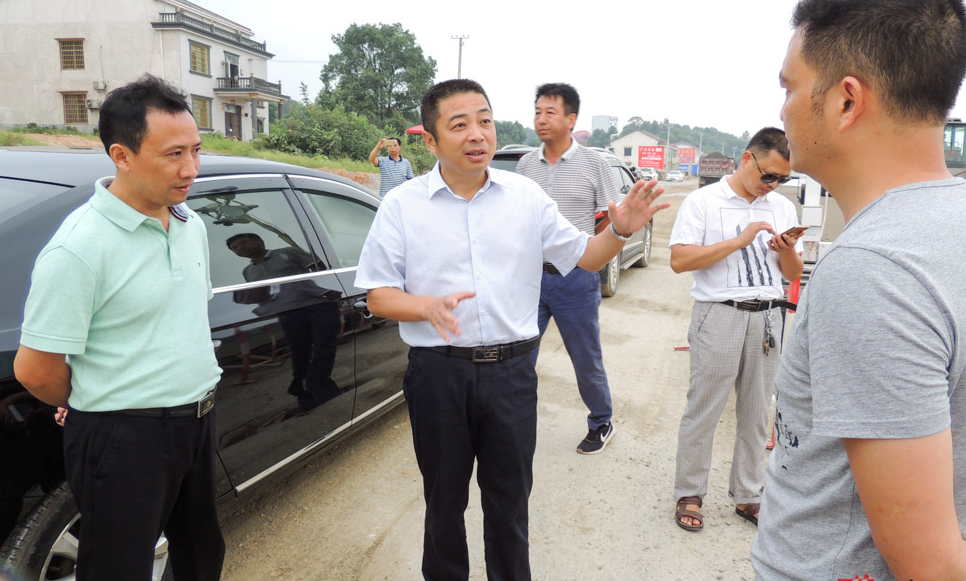 朱平波(左二)查看G240施工情况