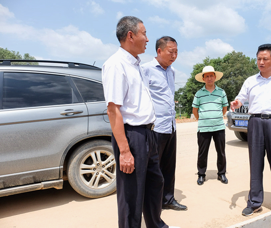 向伟雄(右)督查G240汨罗段工程建设