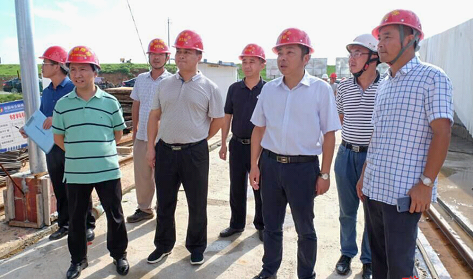 朱平波(右三)检查G240汨罗江大桥施工安全情况