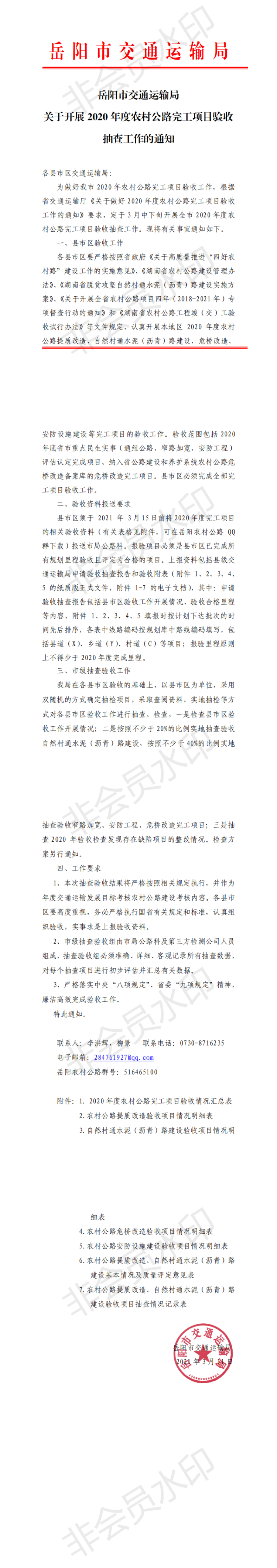 关于开展2020年度农村公路完工项目验收抽查工作的通知