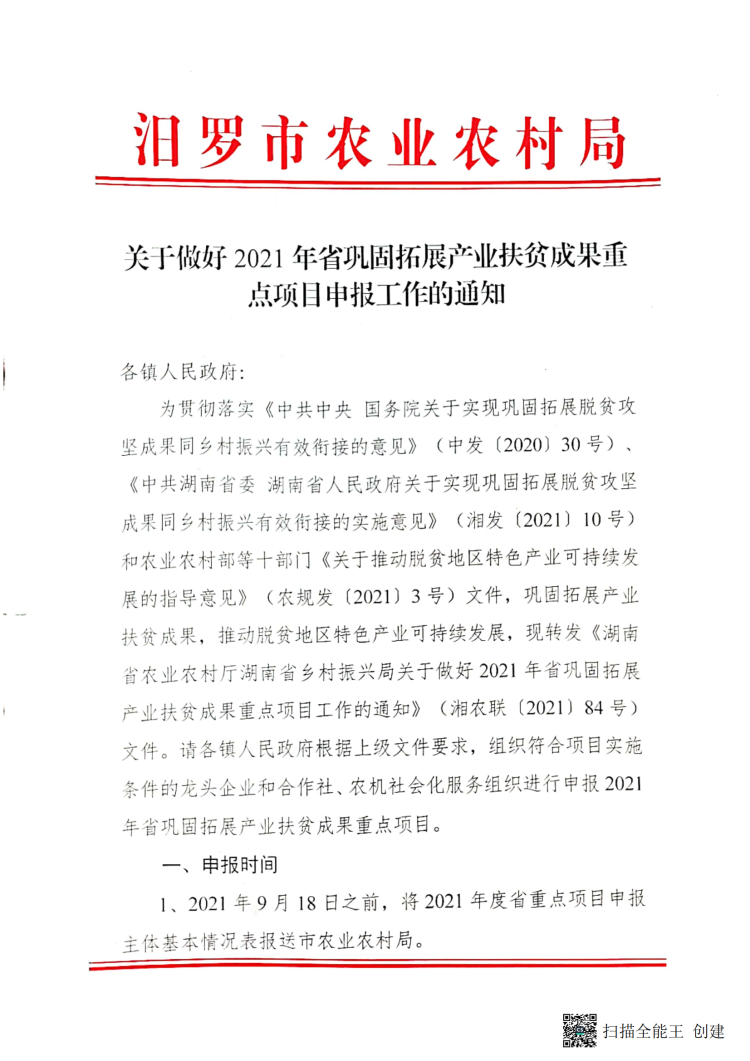 关于做好2021年省巩固拓展产业扶贫成果重点项目申报工作的通知