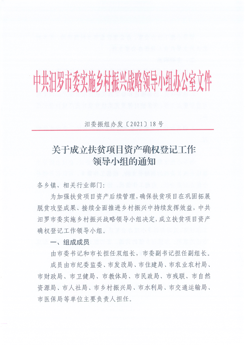 关于成立扶贫项目资产确权登记工作领导小组的通知