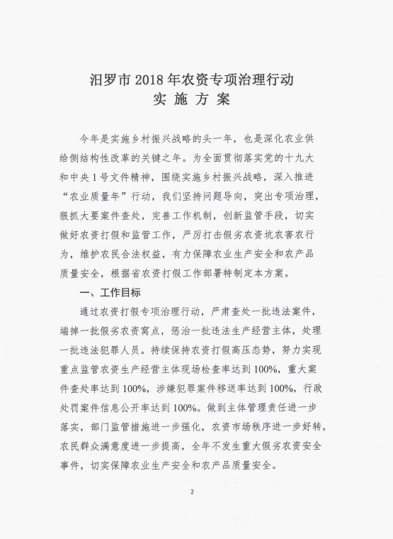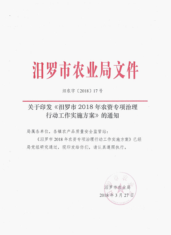 汨罗市农业局关于印发《汨罗市2018年农资专项治理行动工作实施方案》的通知
