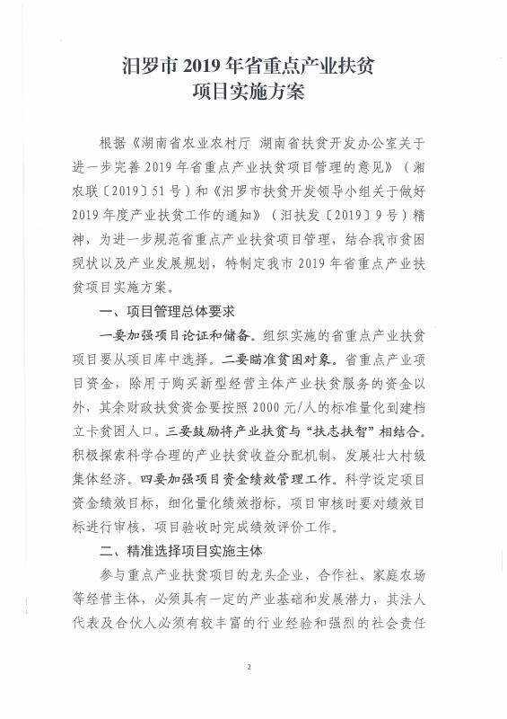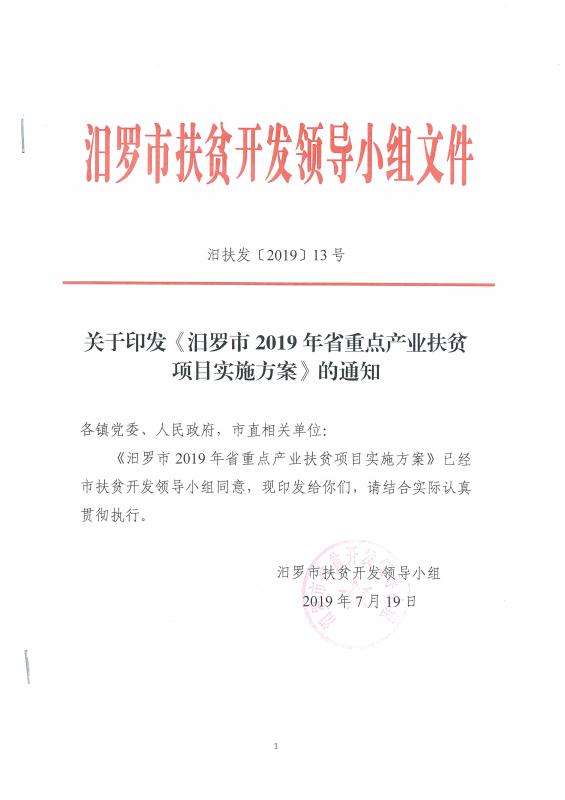 汨罗市2019年省重点产业扶贫项目实施方案 (汨扶发13号).doc