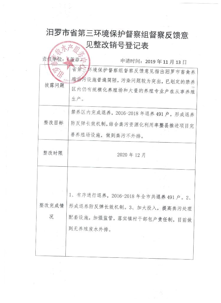 汨罗市省第三环境督察组反馈“畜禽养殖治污设施普遍简陋,污染问题较为突出”意见整改完成情况公示