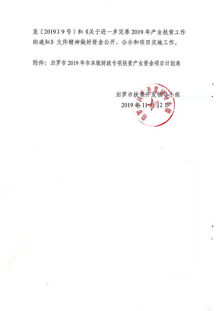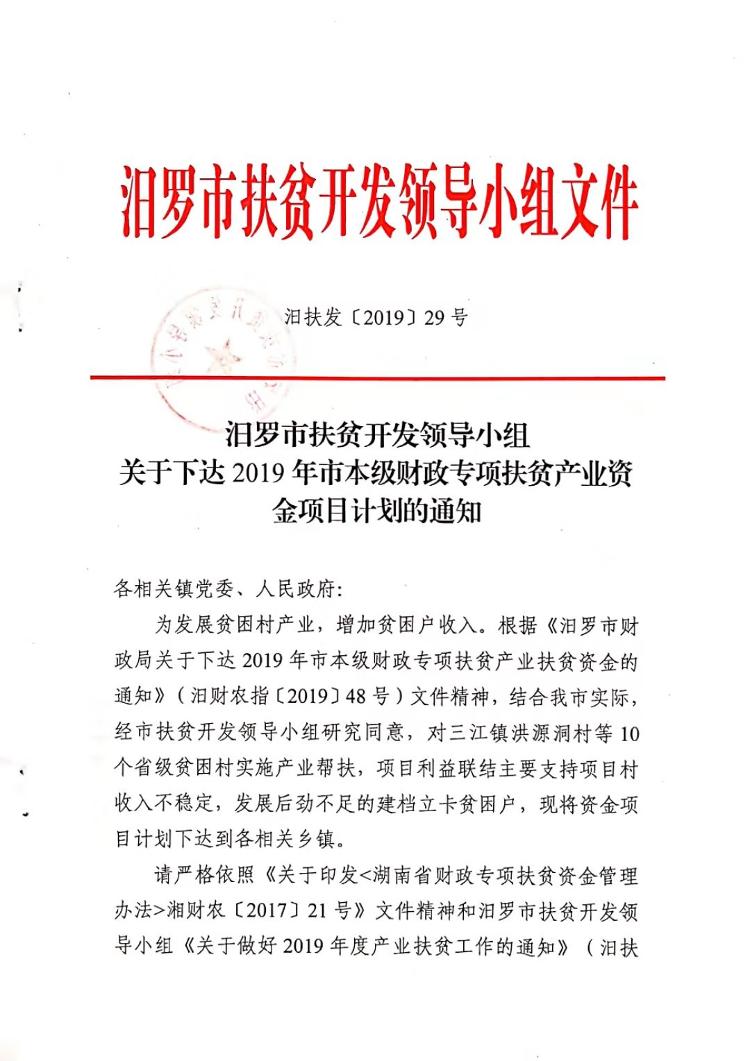 关于下达2019年度本级财政专项扶贫产业资金项目计划的通知