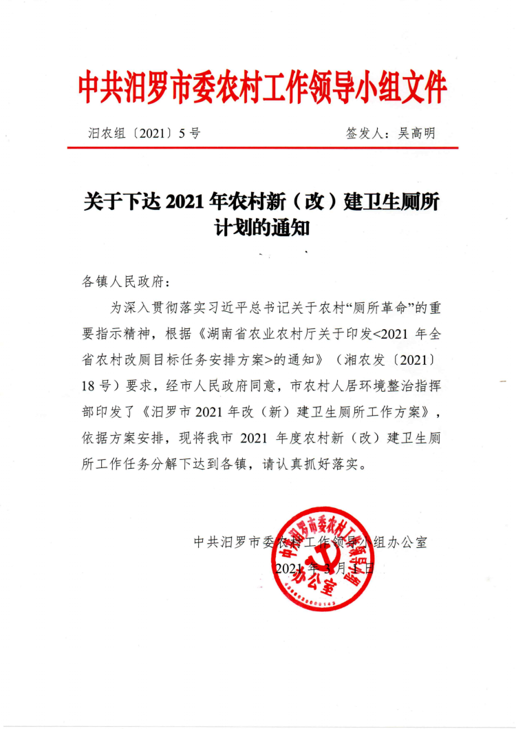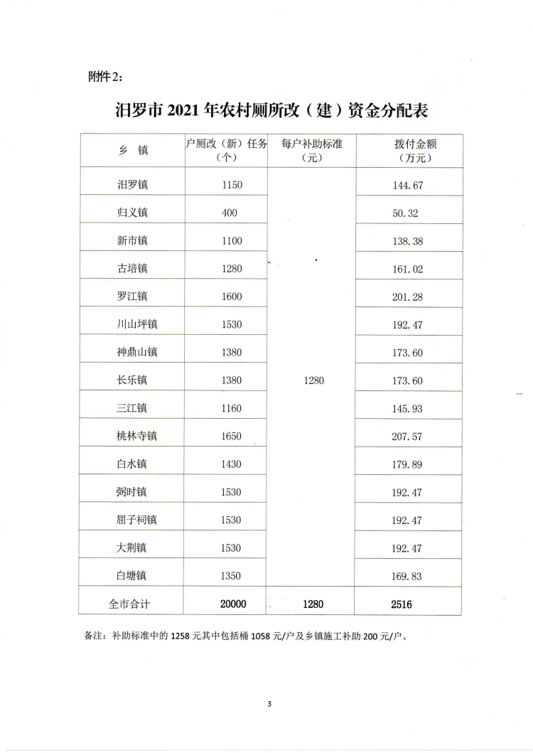 关于下达2021年农村新(改)建卫生厕所计划的通知(公示)