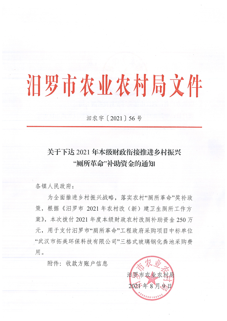 关于下达2021年本级财政衔接推进乡村振兴“厕所革命”补助资金的知