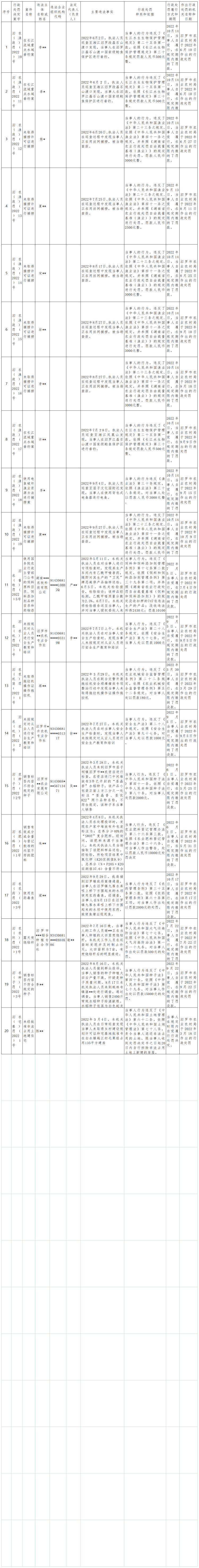 2022年下半年农业行政处罚案件公示