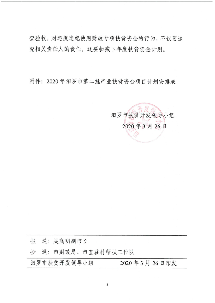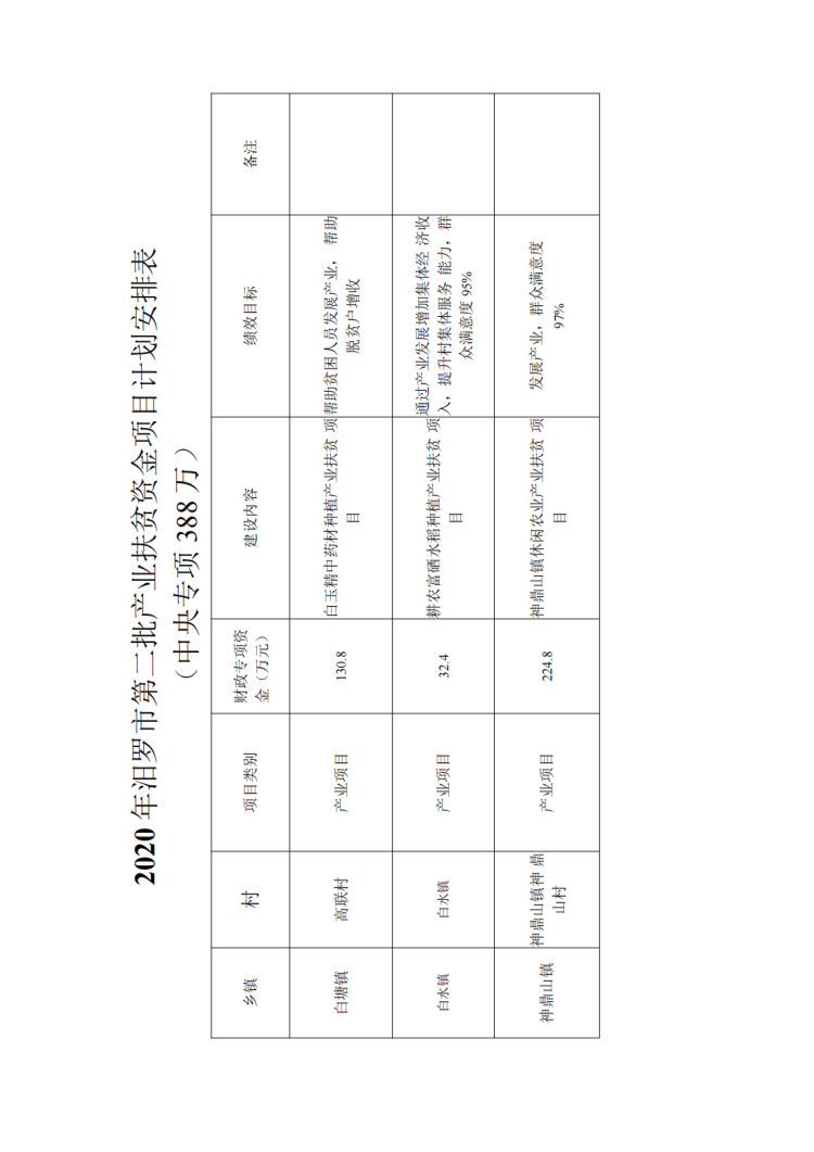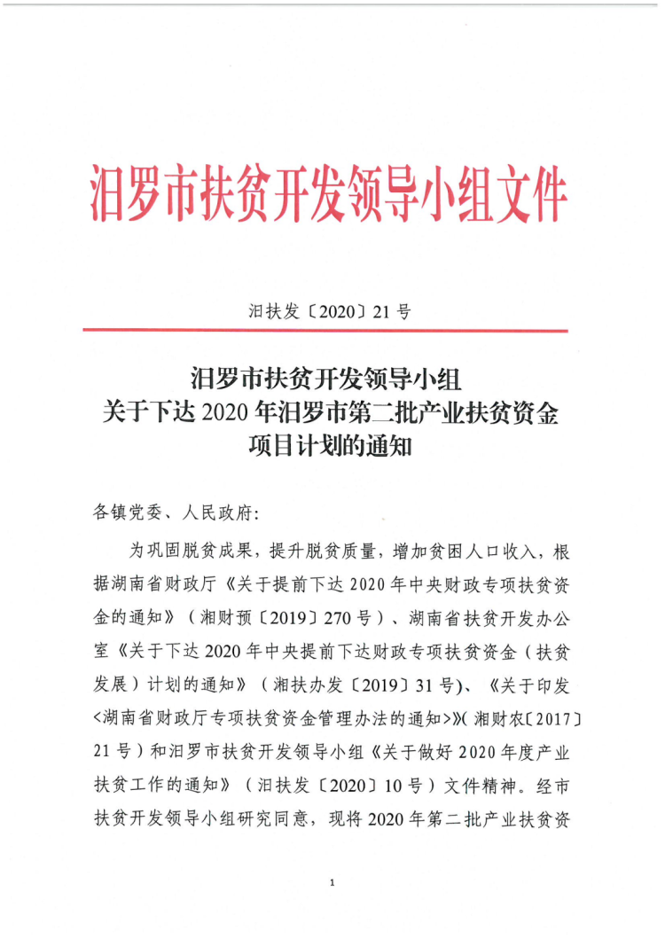 关于下达2020年汨罗市第二批产业扶贫资金项目计划的通知