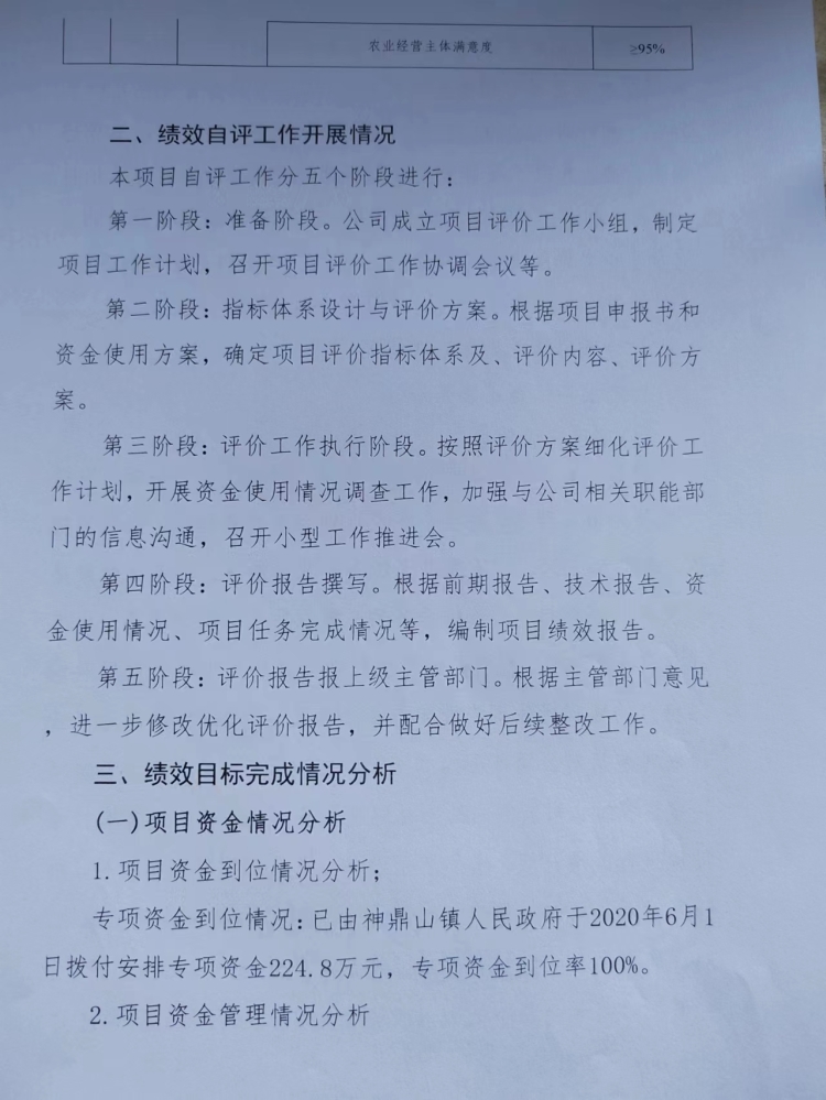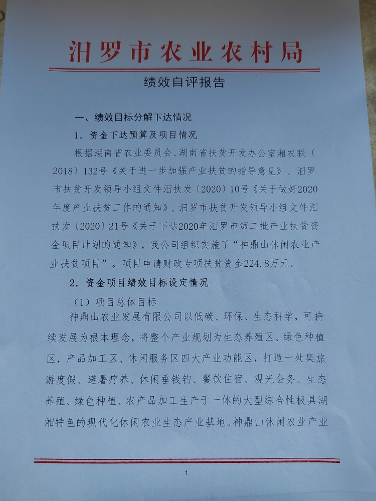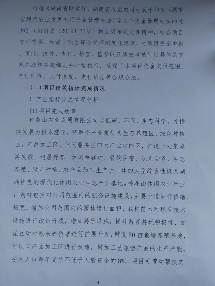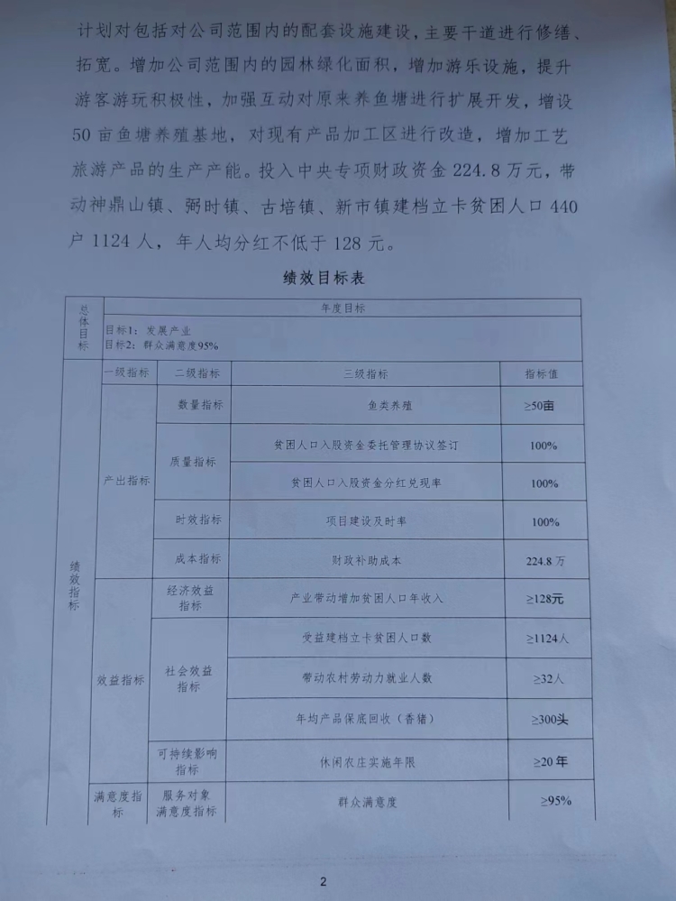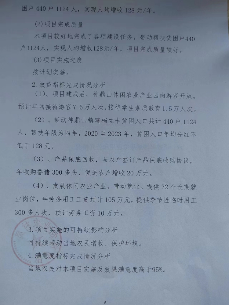 2020年神鼎山休闲农业产业扶贫项目绩效自评报告