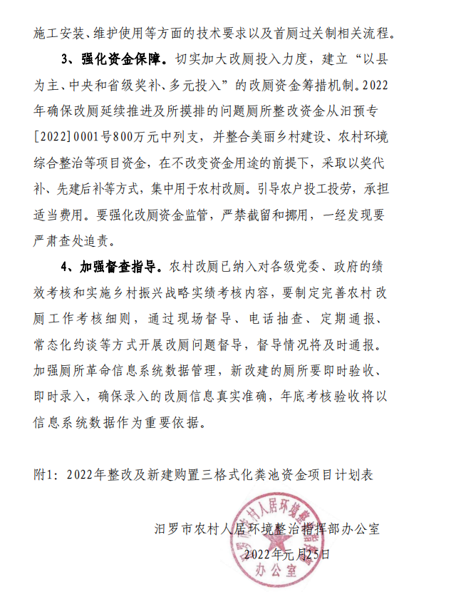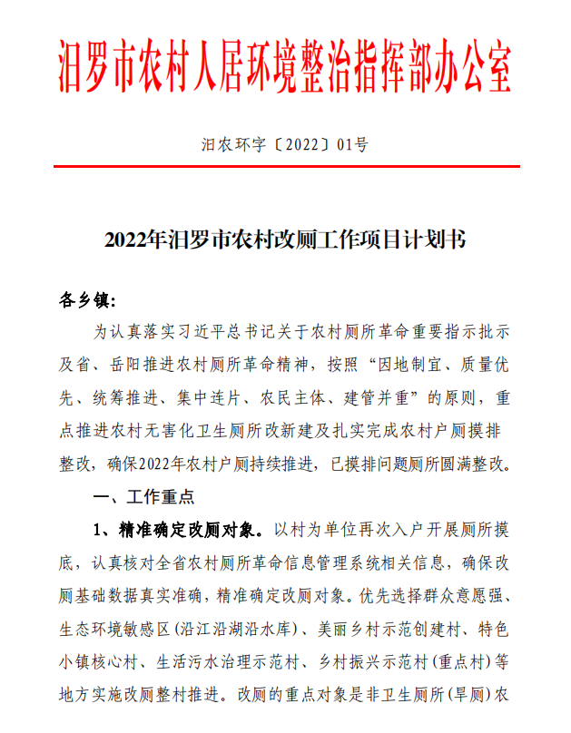 2022年汨罗市农村改厕工作项目计划书