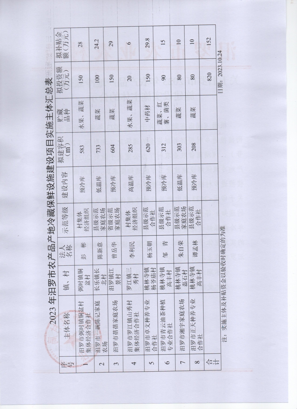 关于汨罗市2023年农产品产地冷藏保鲜设施建设实施主体的公示