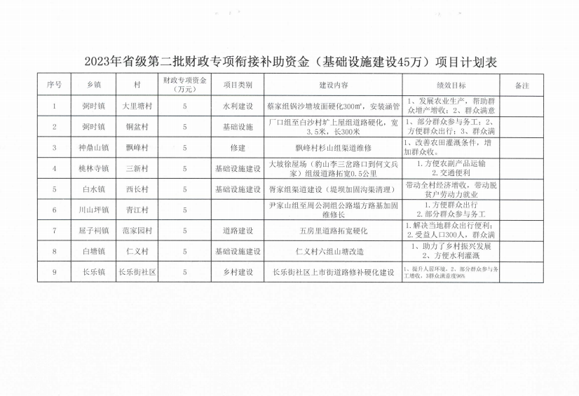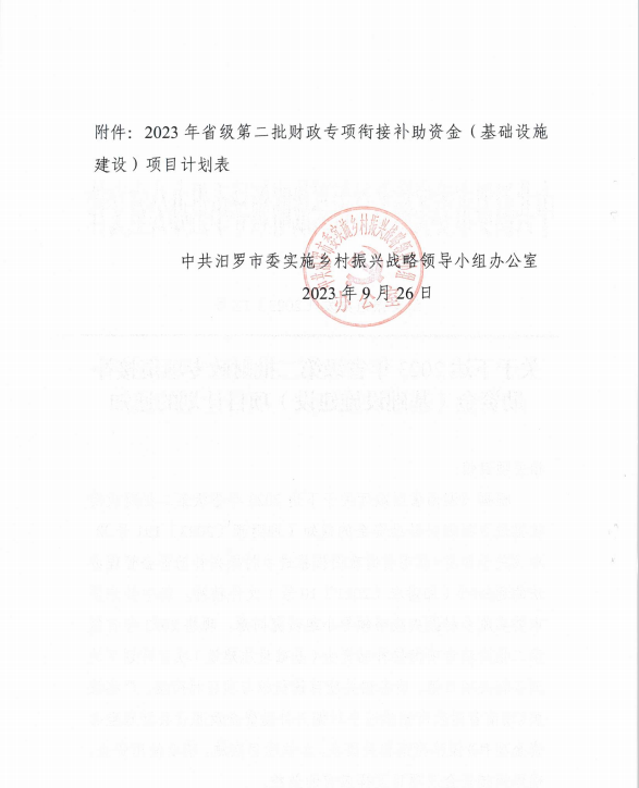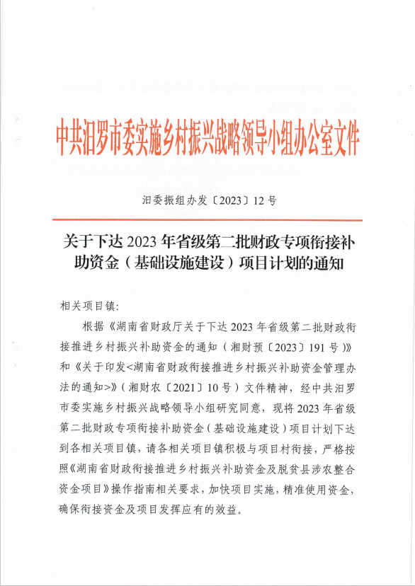 关于下达2023年省级第二批财政专项衔接补助资金(基础设施建设)项目计划的通知