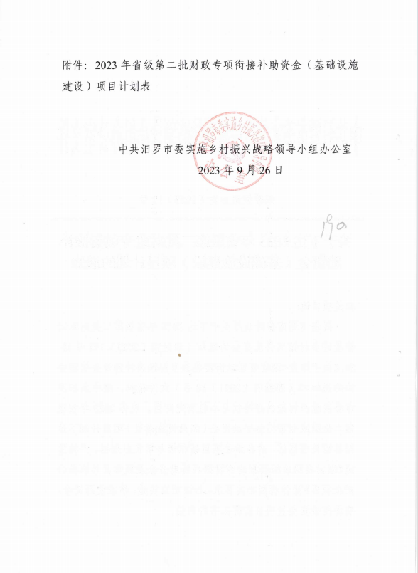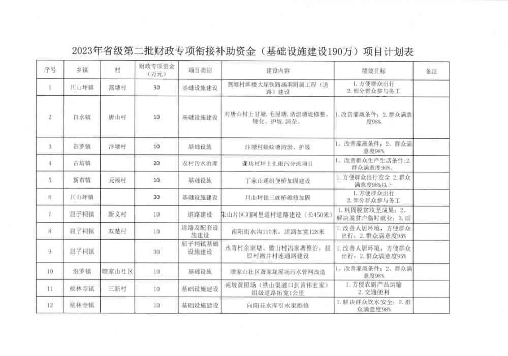 关于下达2023年省级第二批财政专项衔接补助资金(基础设施建设)项目计划的通知