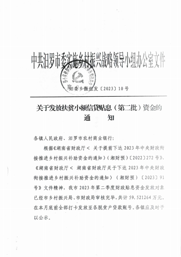 关于发放扶贫小额信贷贴息(第二批)资金的通知
