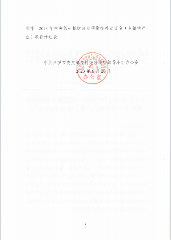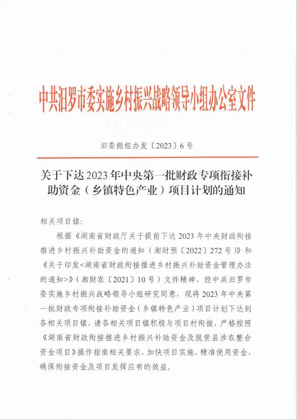 关于下达2023年中央第一批财政专项衔接补助资金(乡镇特色产业)项目计划的通知