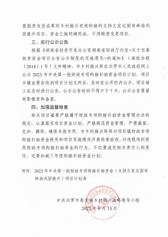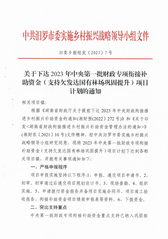 关于下达2023年中央第一批财政专项衔接补助资金(支持欠发达国有林场巩固提升)项目计划的通知