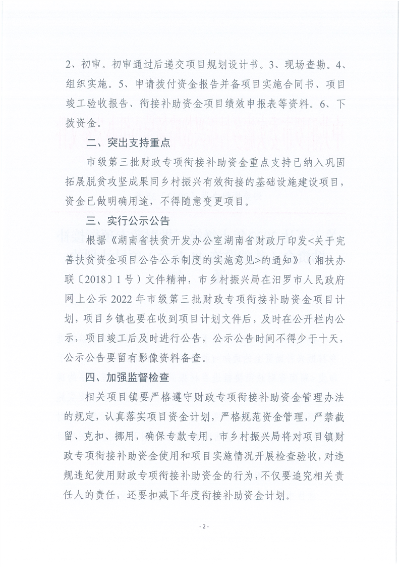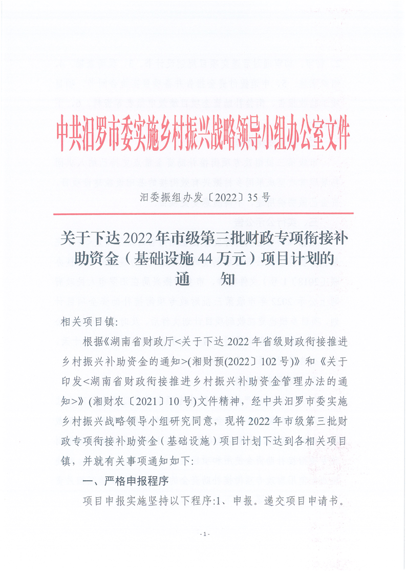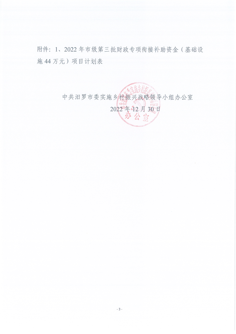 关于下达2022年市级第三批财政专项衔接补助资金(基础设施44万元)项目计划的通知