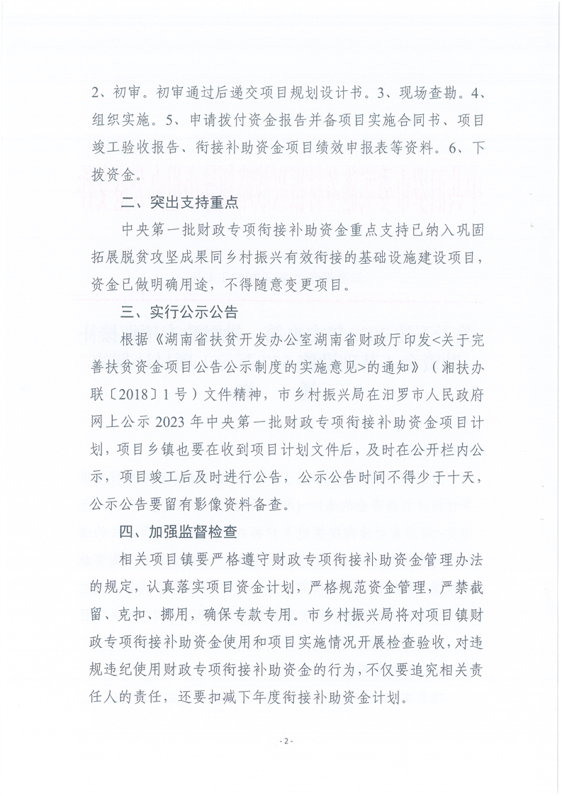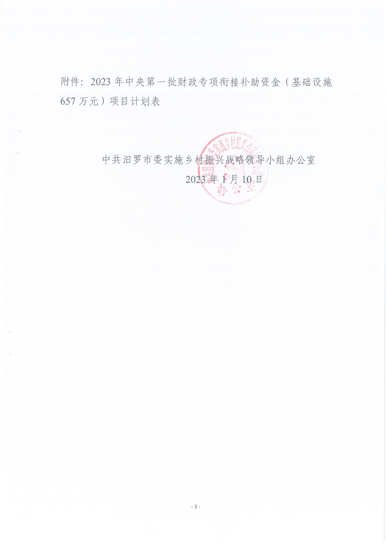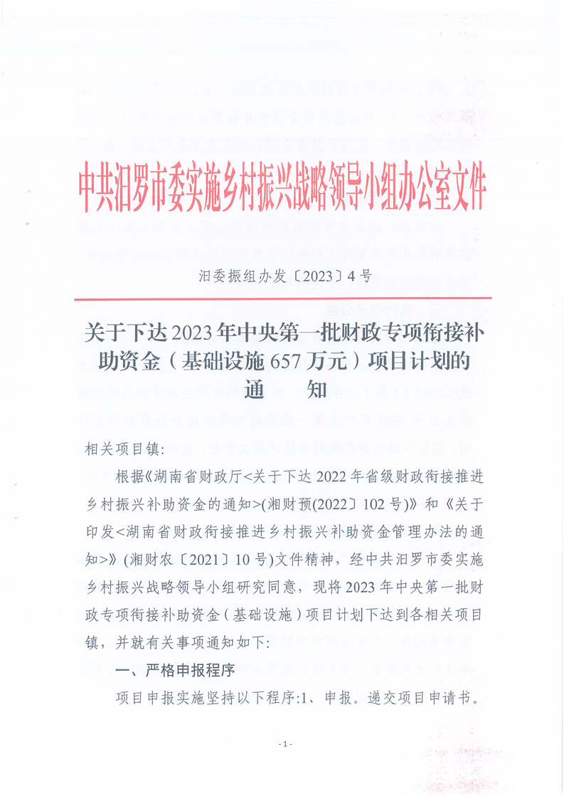 关于下达2023年中央第一批财政专项衔接补助资金(基础设施657万元)项目计划的通知