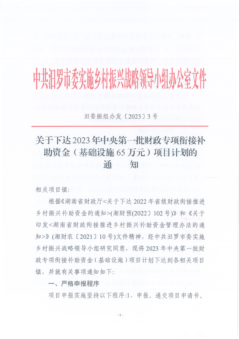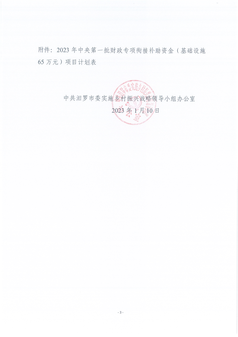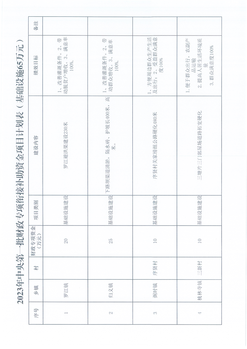 关于下达2023年中央第一批财政专项衔接补助资金(基础设施65万元)项目计划的通知