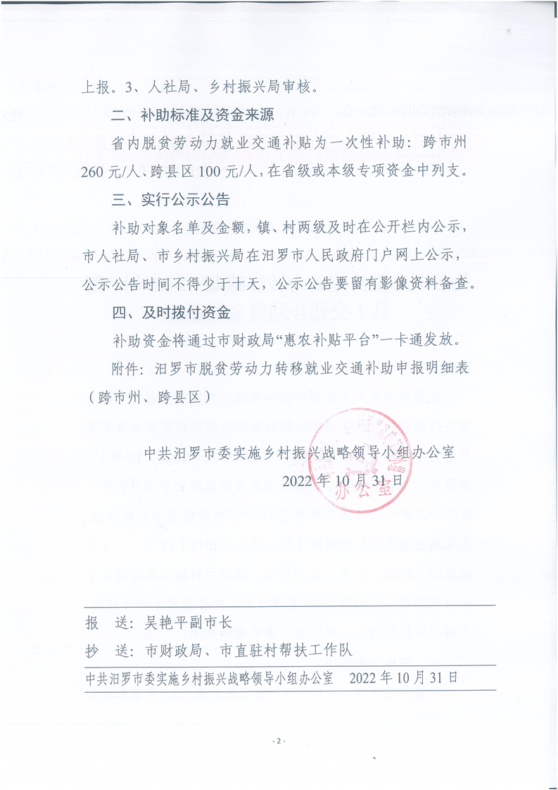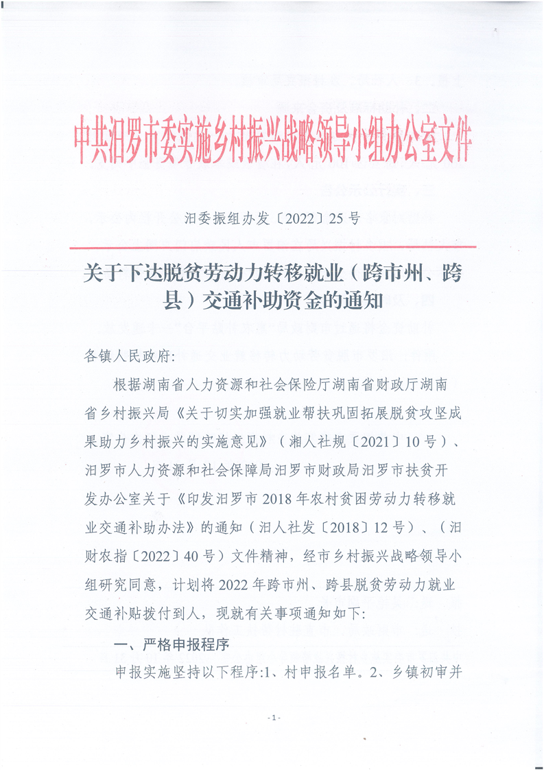 脱贫劳动力转移就业(跨市州、跨县)交通补助资金的通知