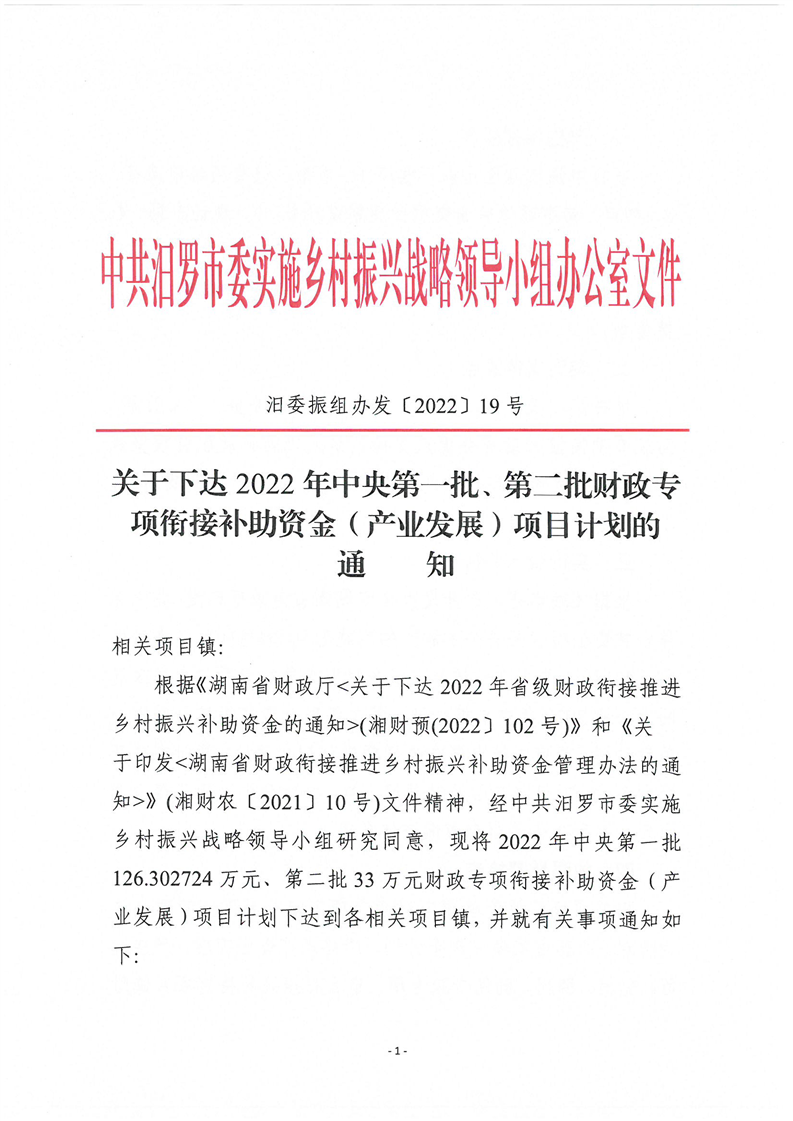 2022年中央第一批、第二批(产业发展)项目计划的通知