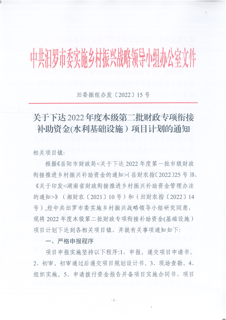 2022年度本级第二批(水利基础设施)项目计划的通知