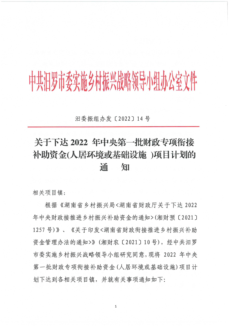 关于下达2022年中央第一批财政专项衔接补助资金项目计划的通知