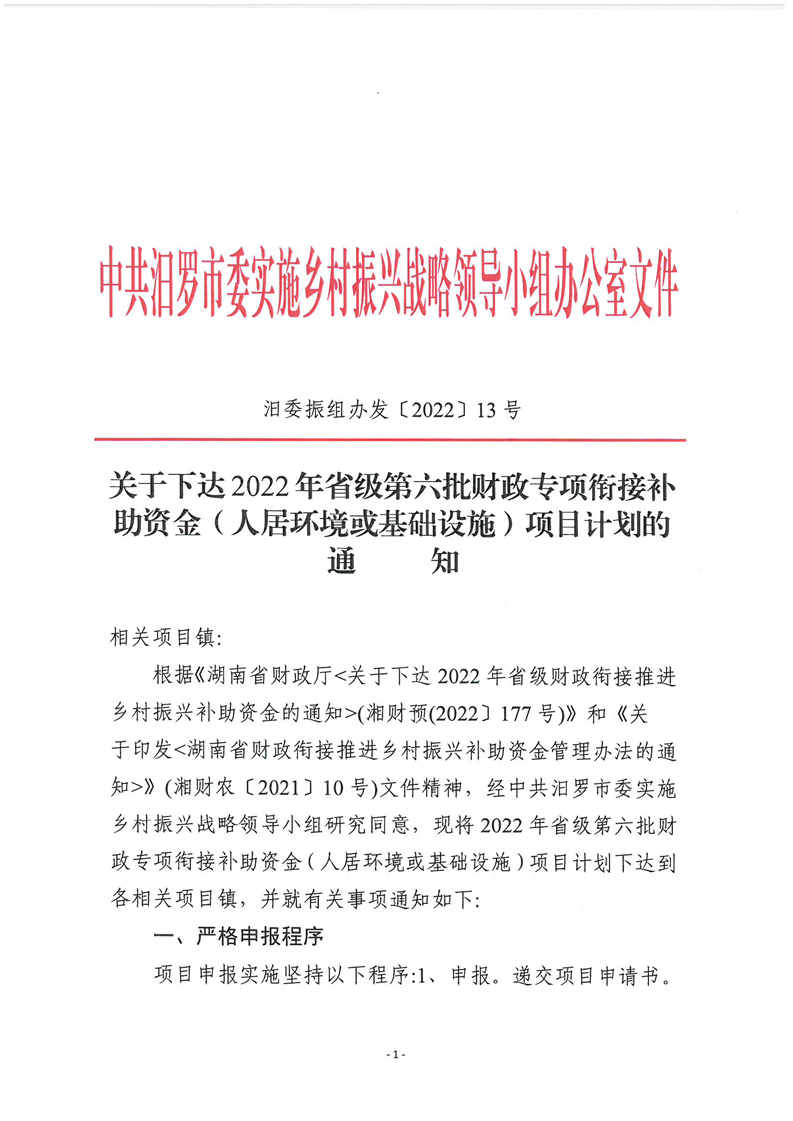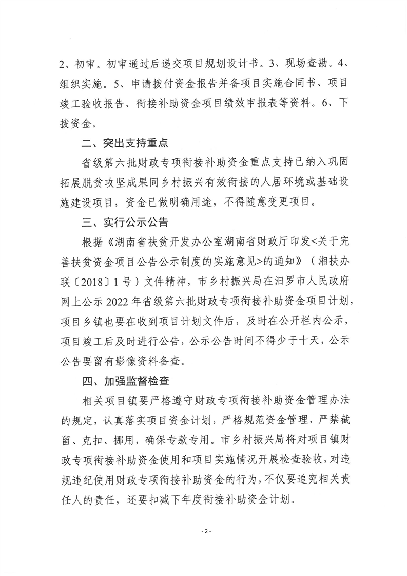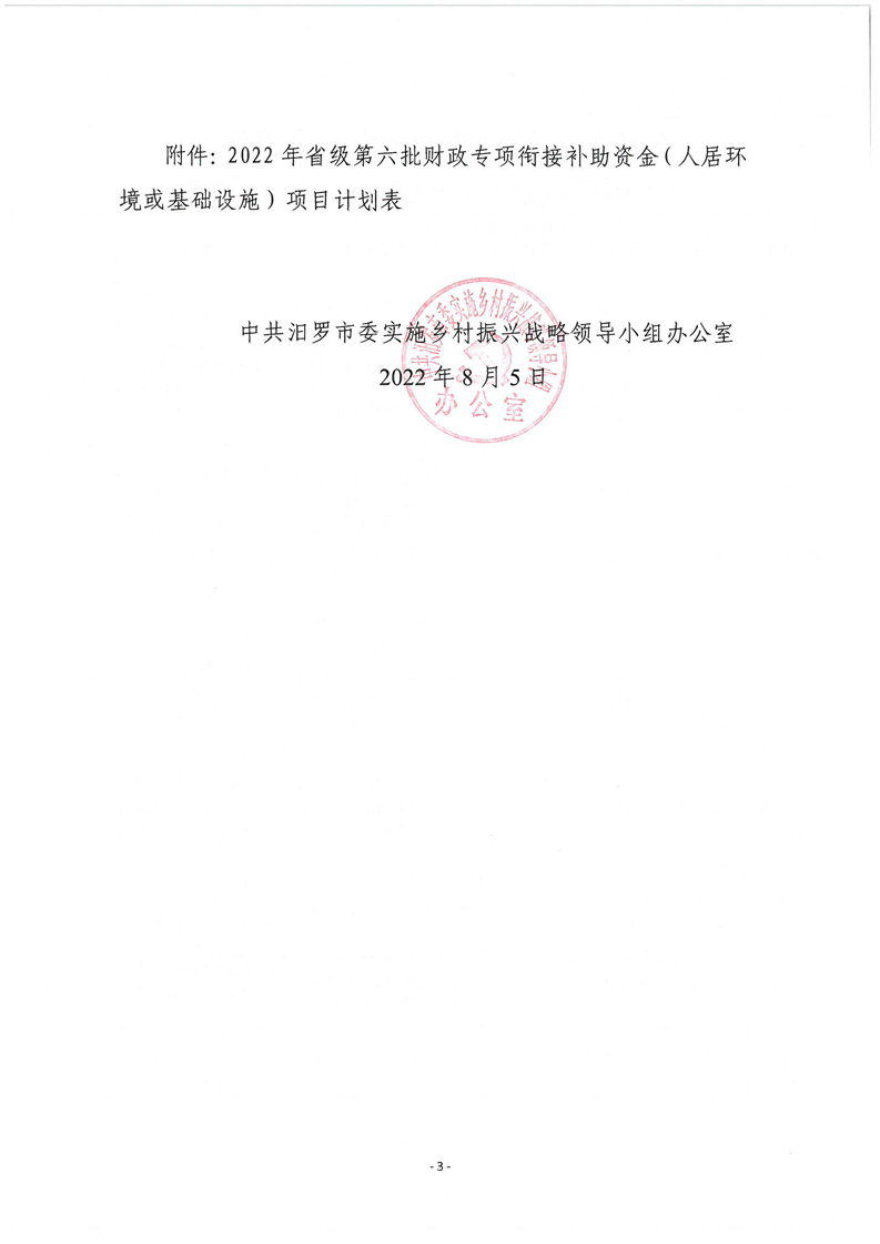 关于下达2022年省级第六批财政专项衔接补助资金(人居环境或基础设施)项目计划的通知