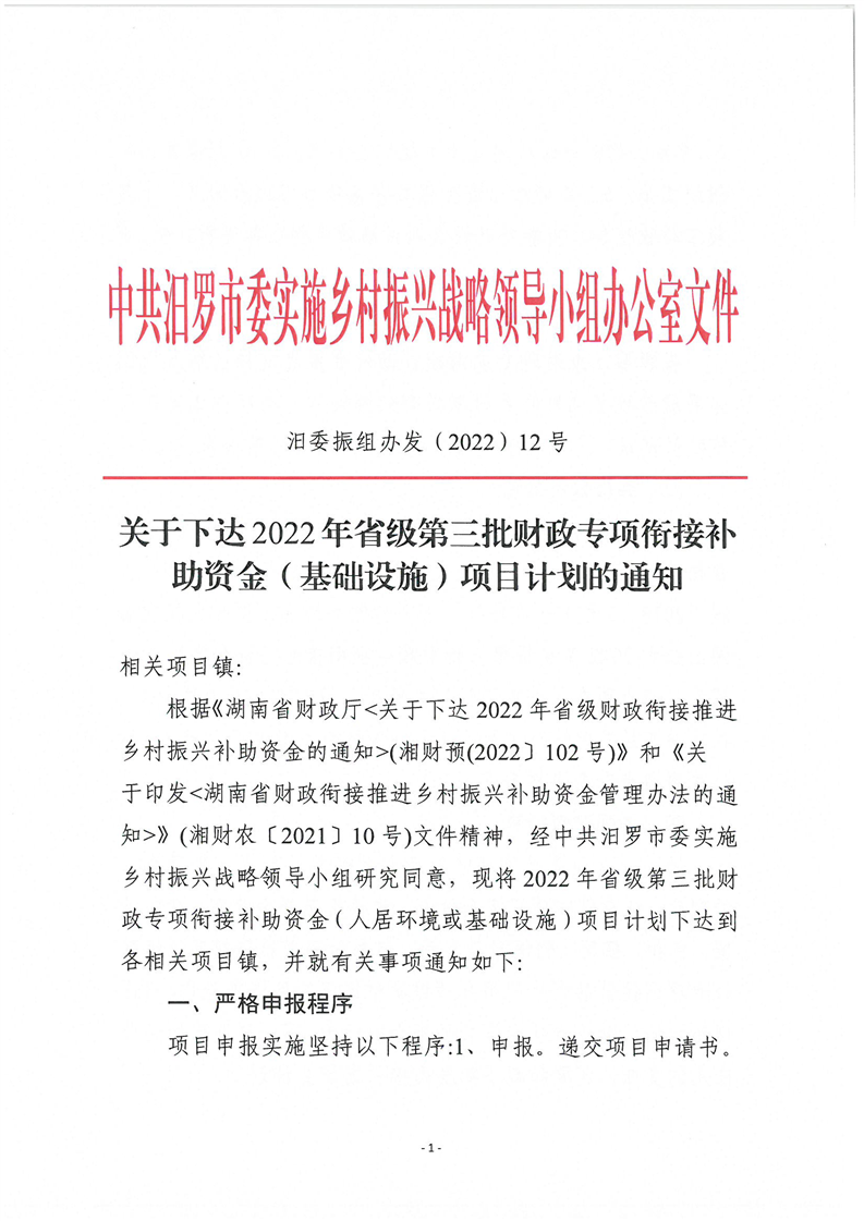 关于下达2022年省级第三批财政专项衔接补助资金(基础设施)项目计划的通知