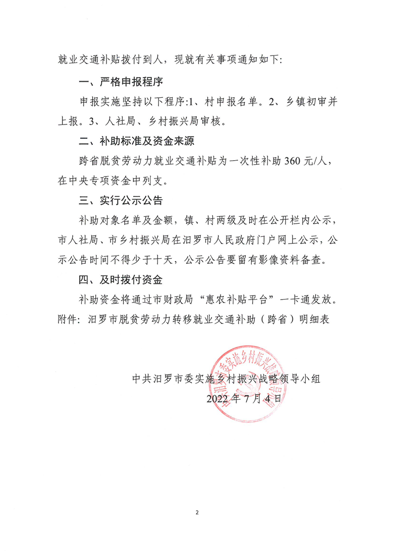 关于下达2022年脱贫劳动力转移就业交通补助资金的通知(跨省)