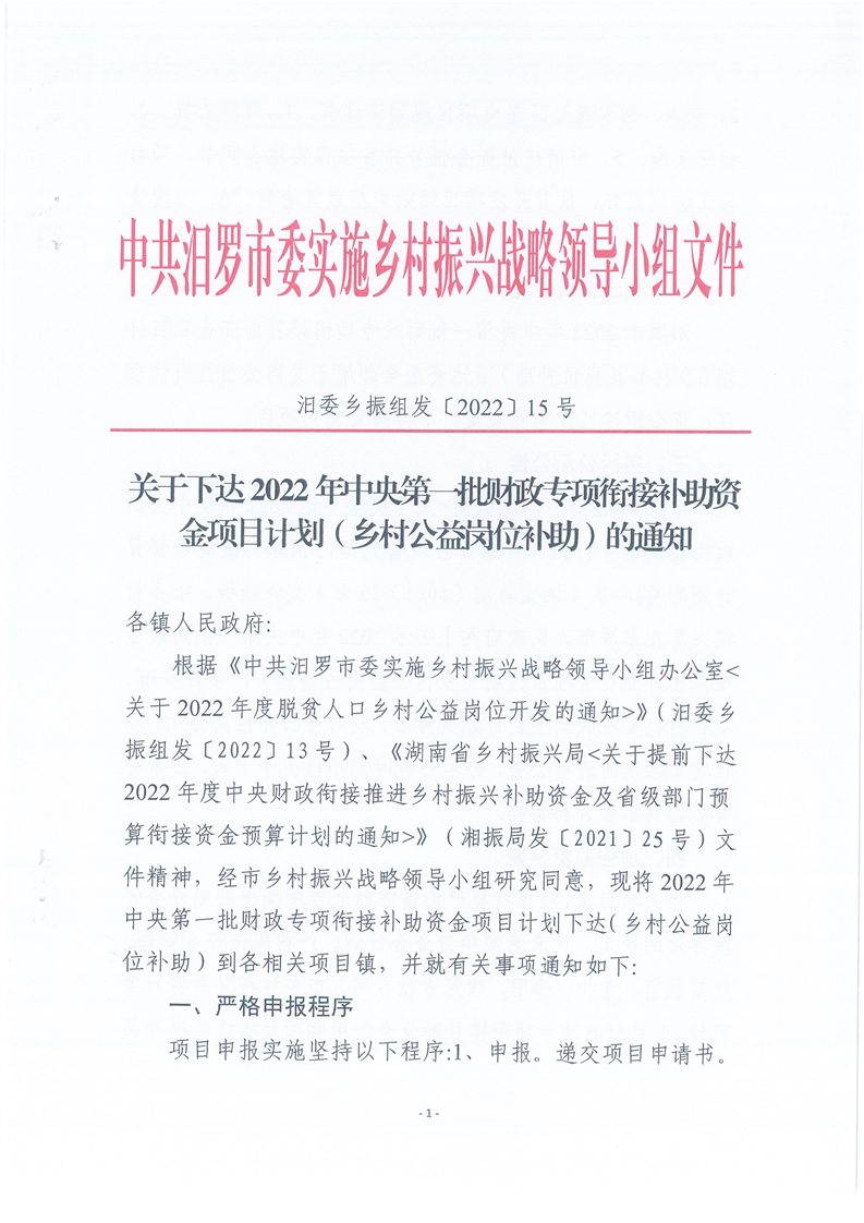 关于下达2022年中央第一批财政专项衔接补助资金项目计划(乡村公益岗位补助)的通知