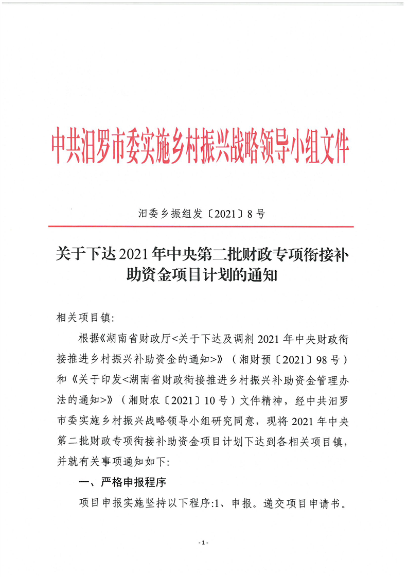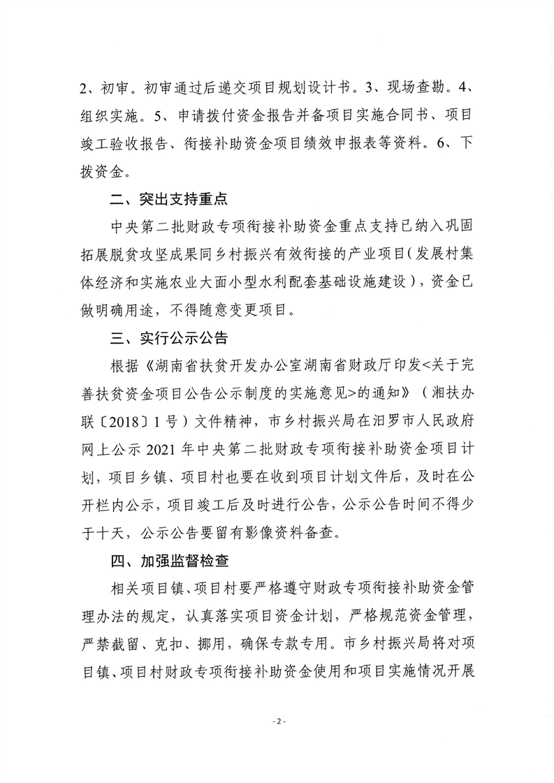 关于下达2021年中央第二批财政专项衔接补助资金项目计划的通知