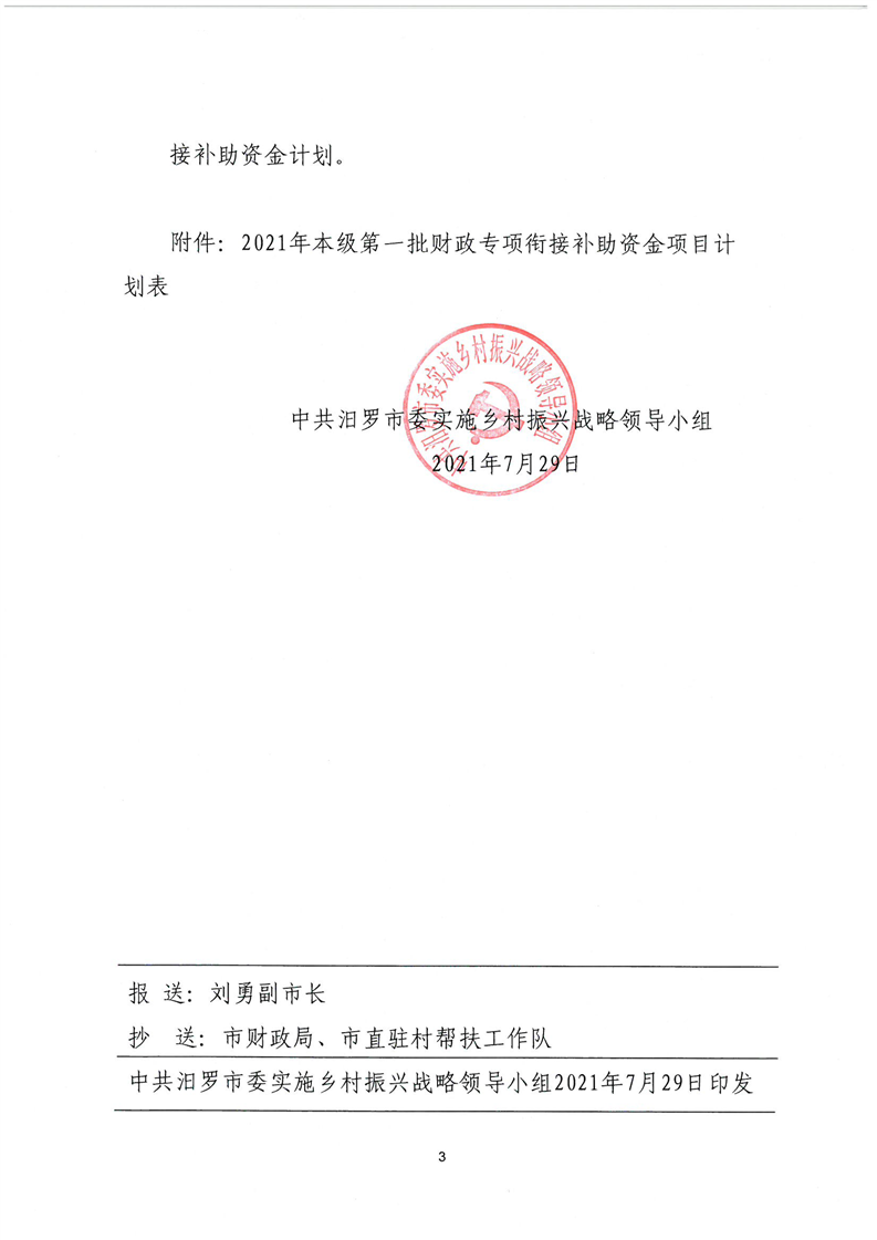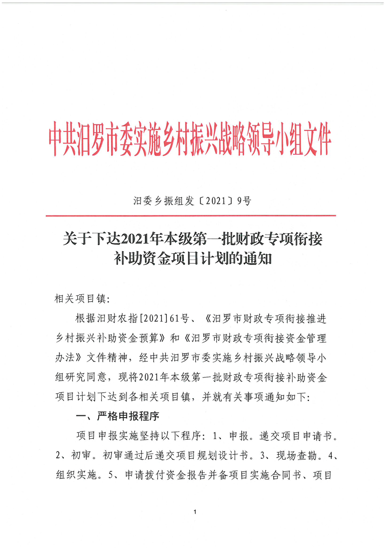 关于下达2021年本级第一批财政专项衔接补助资金项目计划的通知