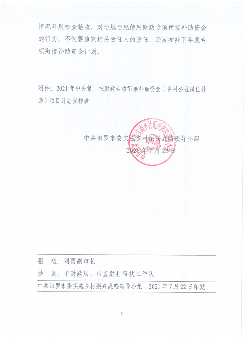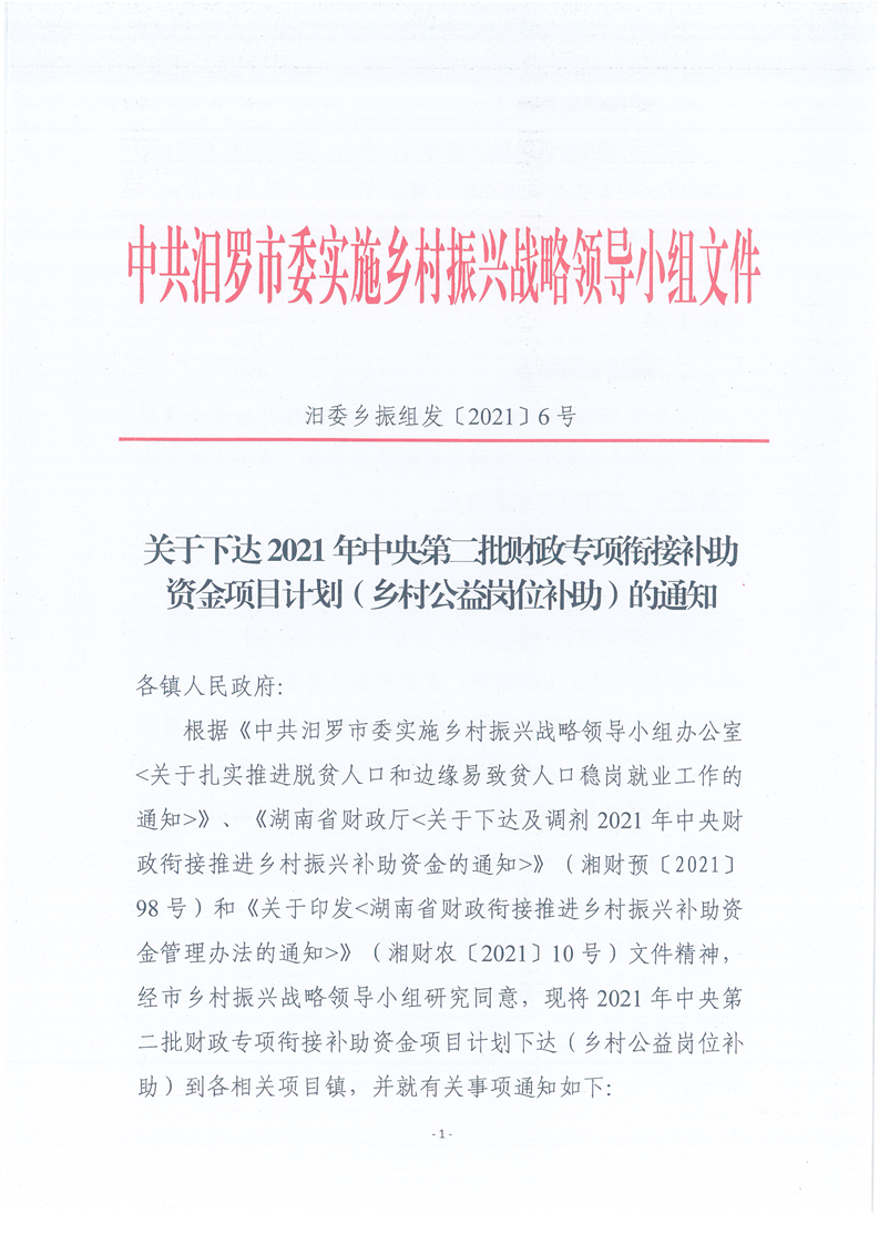 关于下达2021年中央第二批财政专项衔接补助资金计划(乡村公益岗位补助)的通知