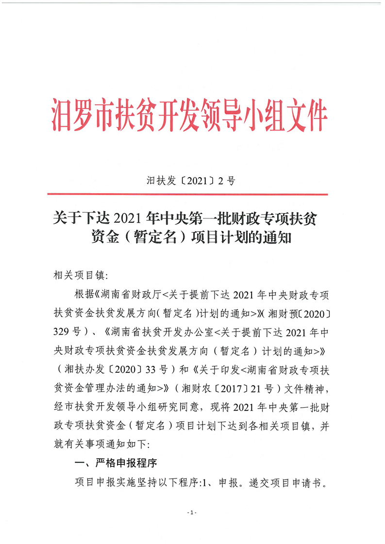 关于下达2021年中央第一批财政专项扶贫资金(暂定名)项目计划的通知