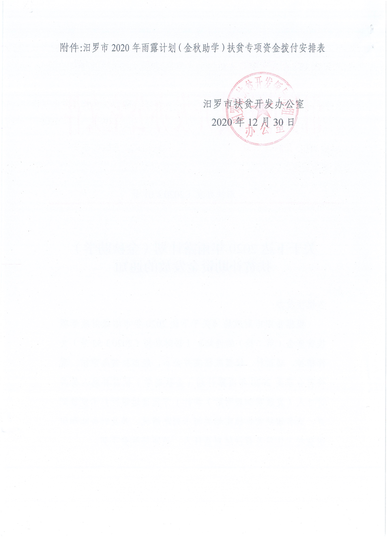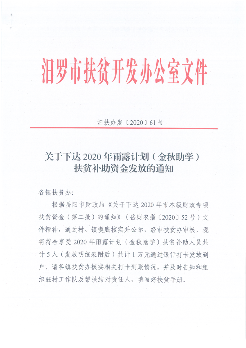 关于下达2020年雨露计划职业教育扶贫补助发放的通知