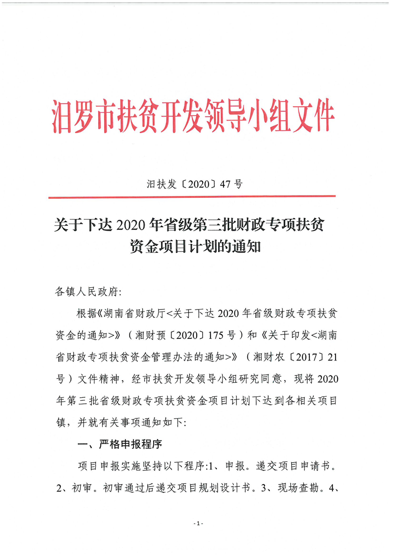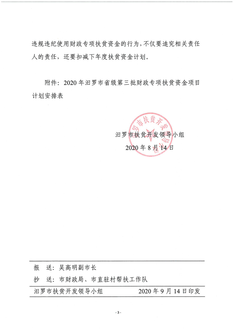 关于下达2020年省级第三批财政专项扶贫资金项目计划的通知