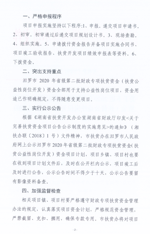 关于下达2020年省级第二批财政专项扶贫资金(扶贫公益性岗位开发)项目计划的通知