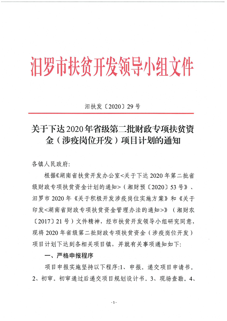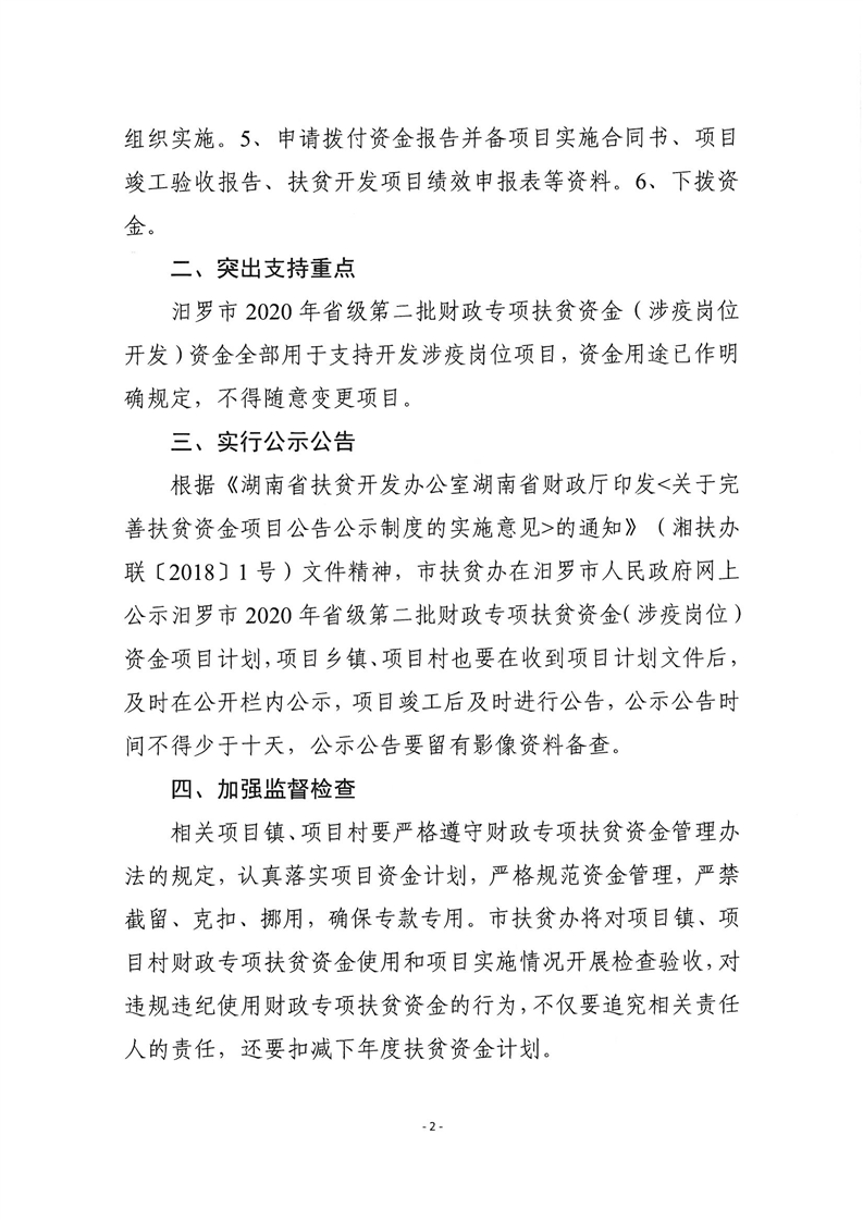 关于下达2020年省级第二批财政专项扶贫资金项目计划的通知