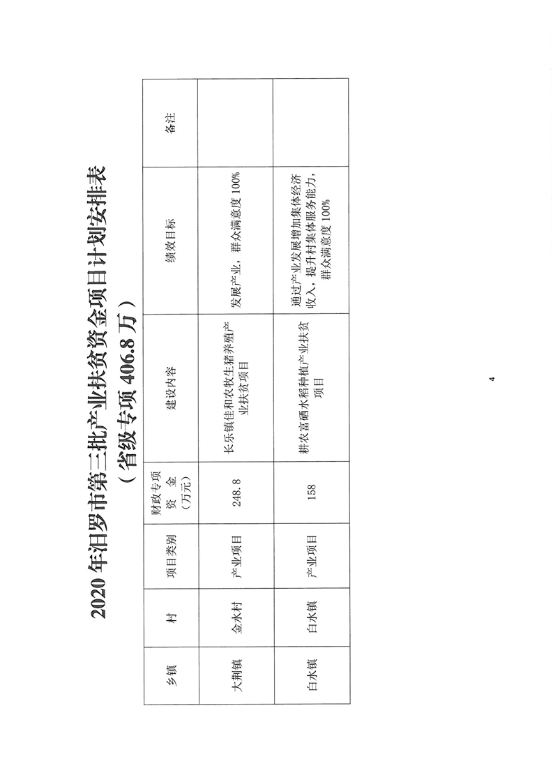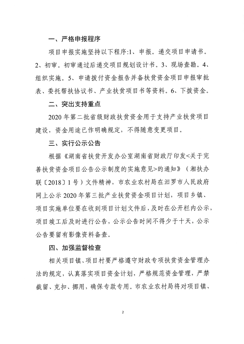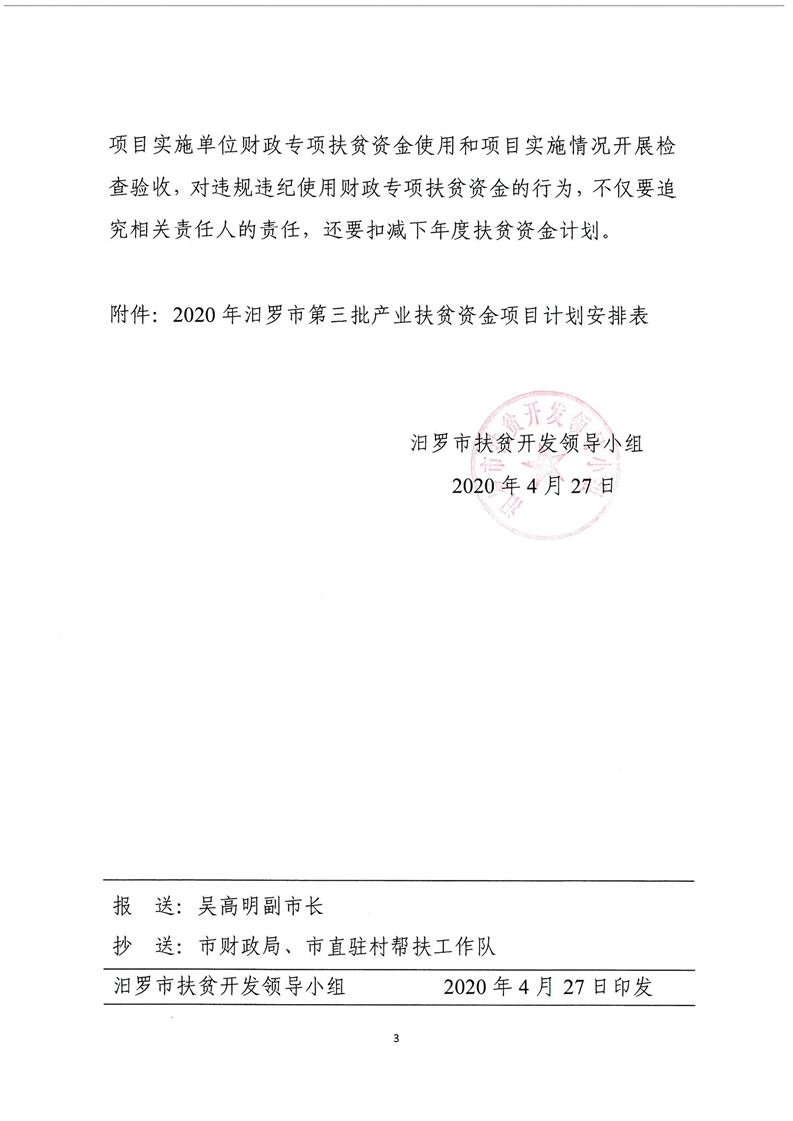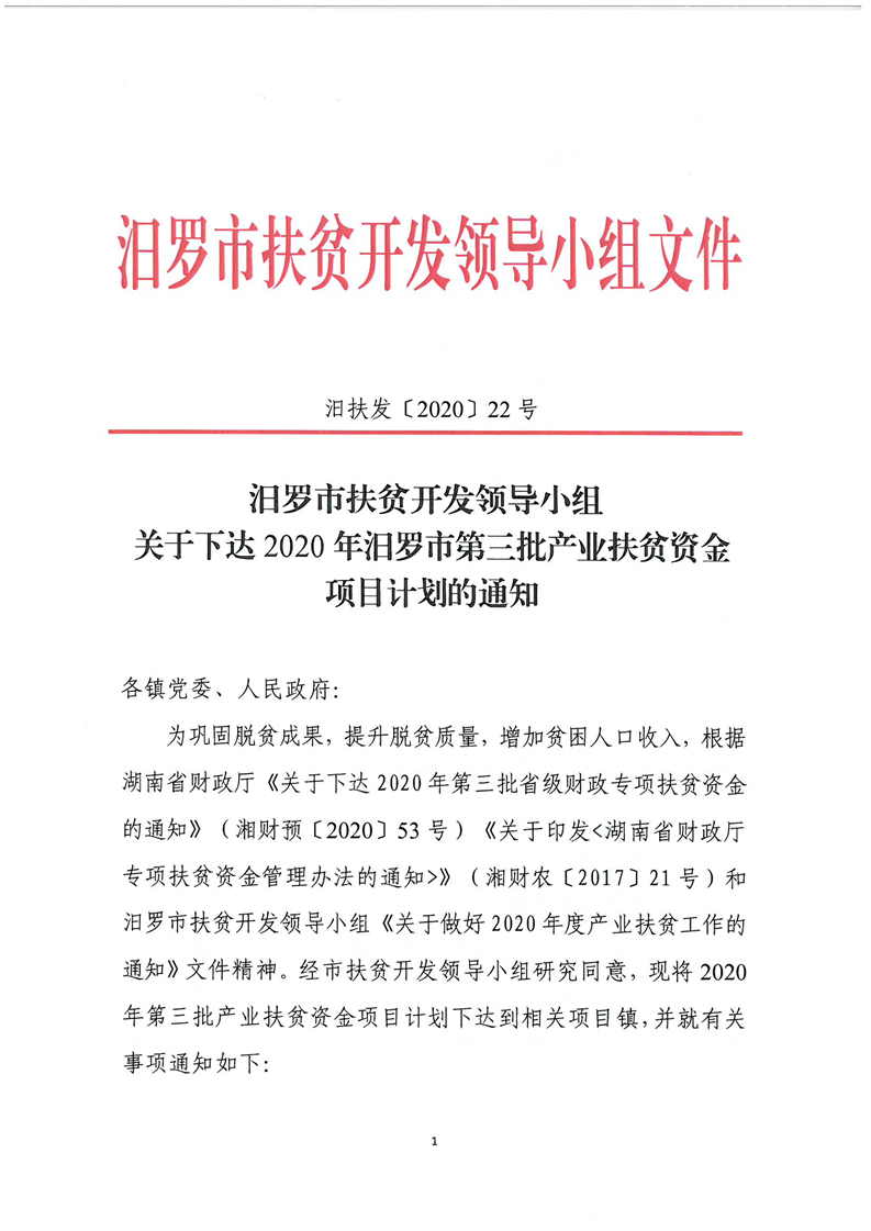 关于下达2020年汨罗市第三批产业扶贫资金项目计划的通知