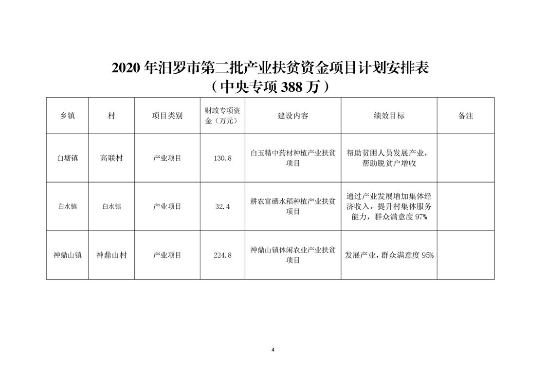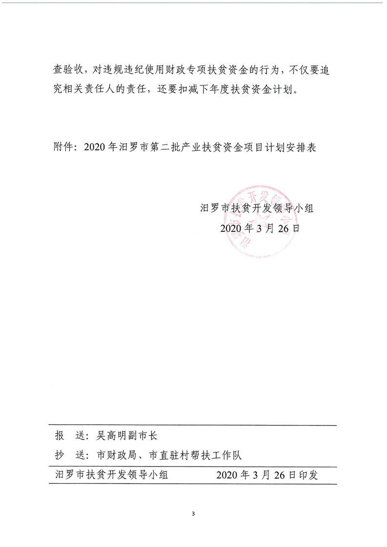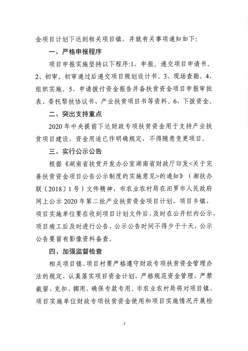 关于下达2020年汨罗市第二批产业扶贫资金项目计划的通知