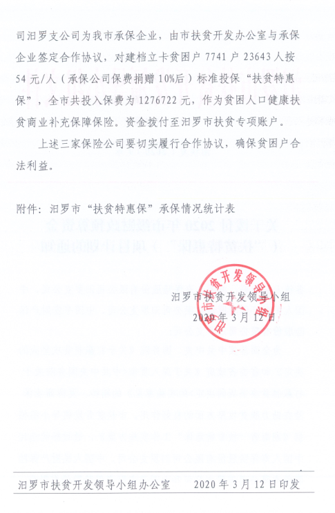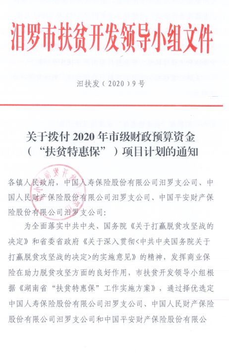 关于拨付2020年市级财政预算资金(特惠保)项目计划的通知